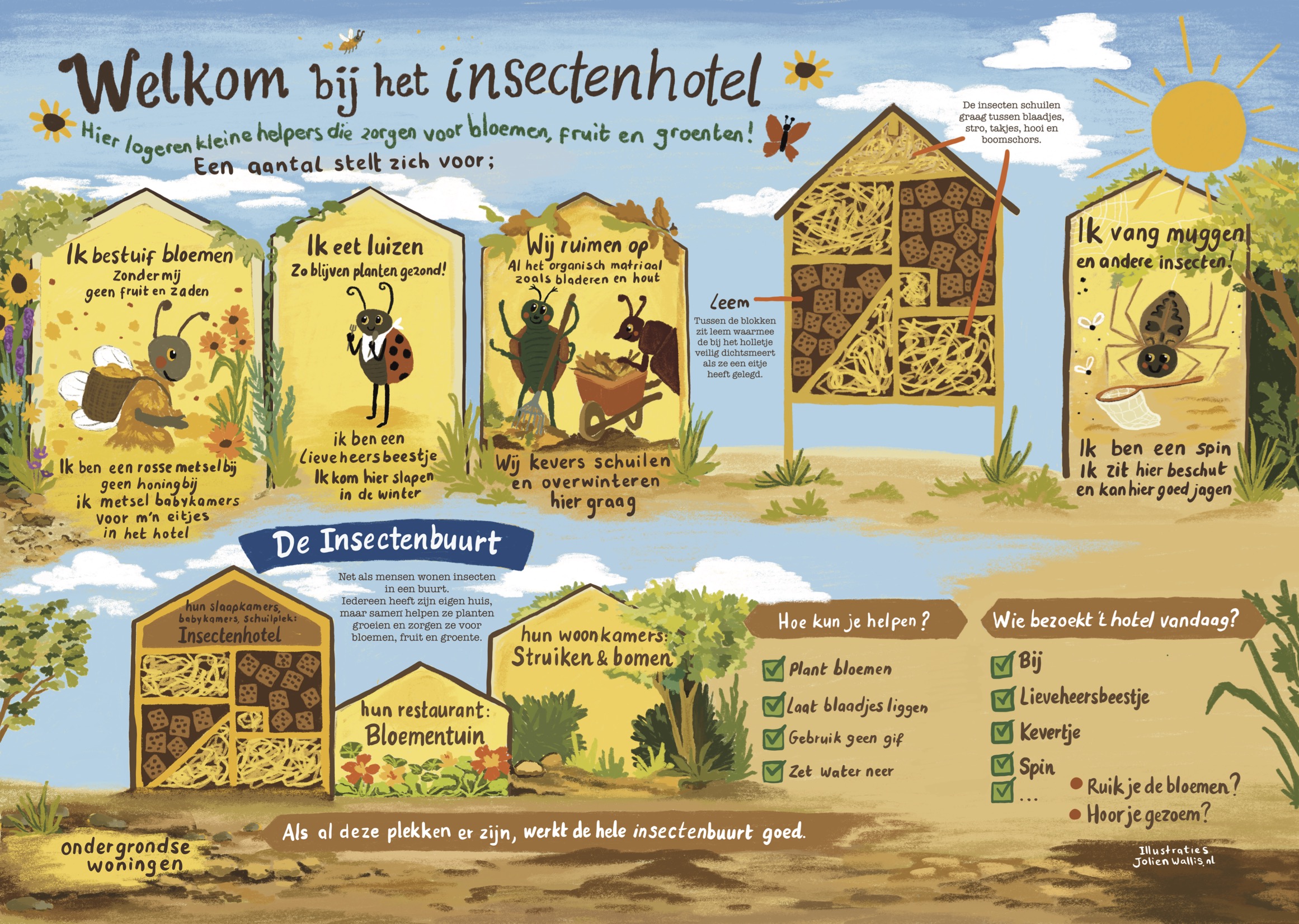 Ik mocht het concept en ontwerp doen van een informatiebord bij een nieuw insectenhotel in het Wachterliedplantsoen in Amsterdam west.