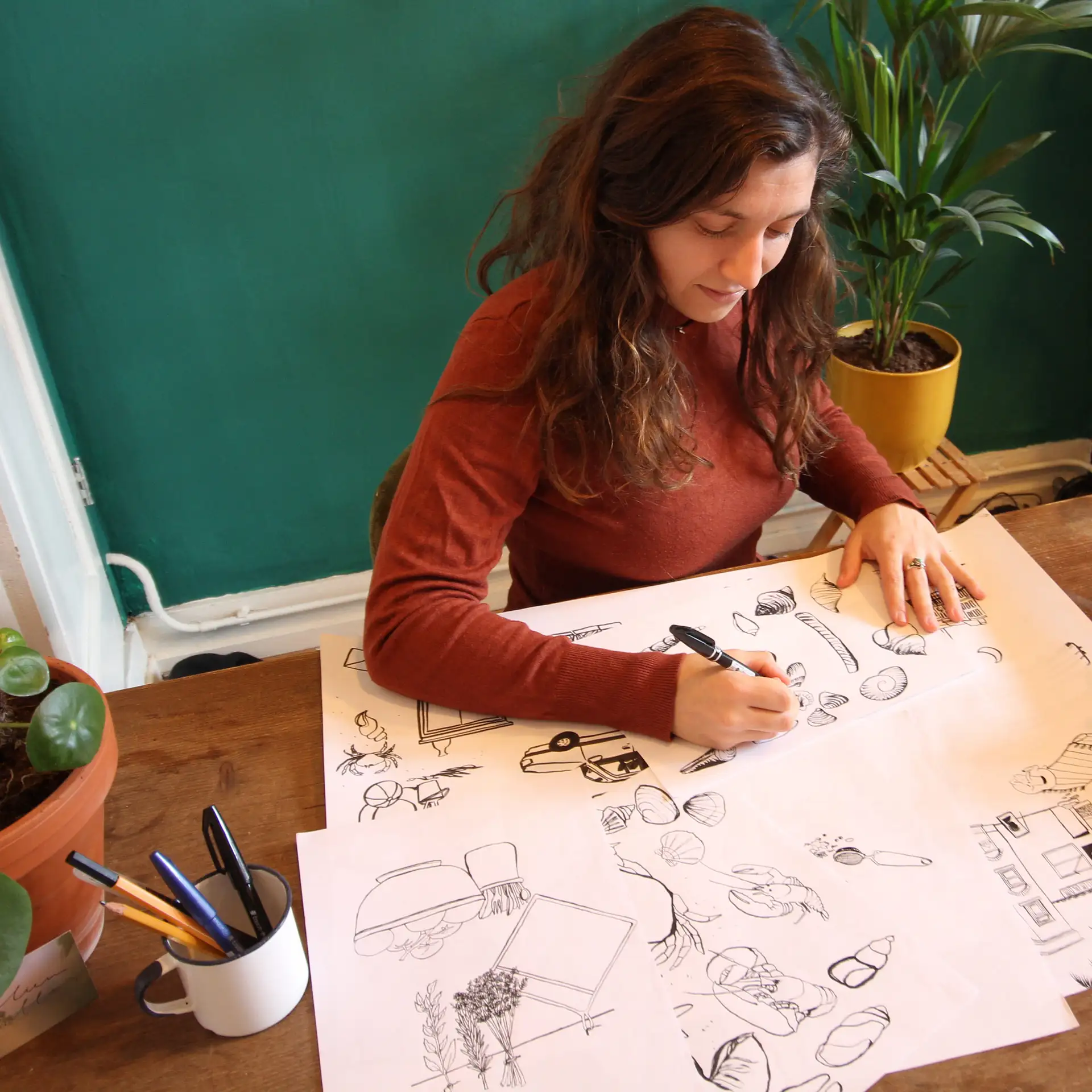 In mijn creatieve werk houdt ik ervan verschillende mensen samen te brengen en een sfeer te creëren door plekken en verhalen te vertalen naar illustraties.